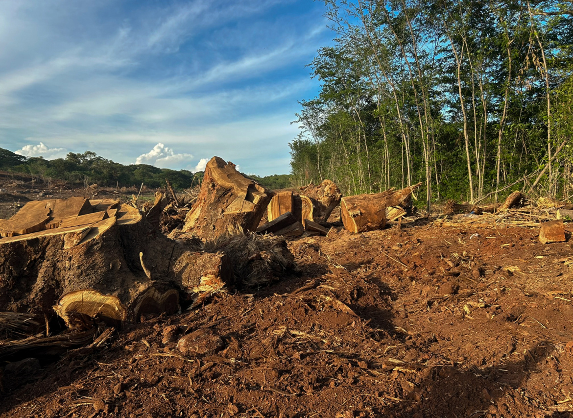 “Estamos muertos en vida” sentencia Candelario Gavidia frente a una pila de árboles derribados y aserrados. Eran árboles que estuvieron ahí desde que tiene memoria y hace dos semanas, personal contratado por la Comisión Ejecutiva Aeroportuaria (CEPA) los taló para abrir paso a la construcción del Aeropuerto del Pacífico, el megaproyecto del gobierno de Nayib Bukele en La Unión.