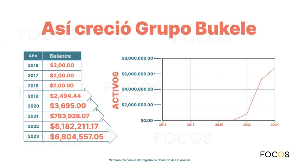 Grupo Bukele multiplicó su capital inicial de $2,000 a poseer activos de $783,928.07 en 2021, y aumentó a $5,182,211.17 en 2022. En 2023 cerró con $6,804,557.05.
