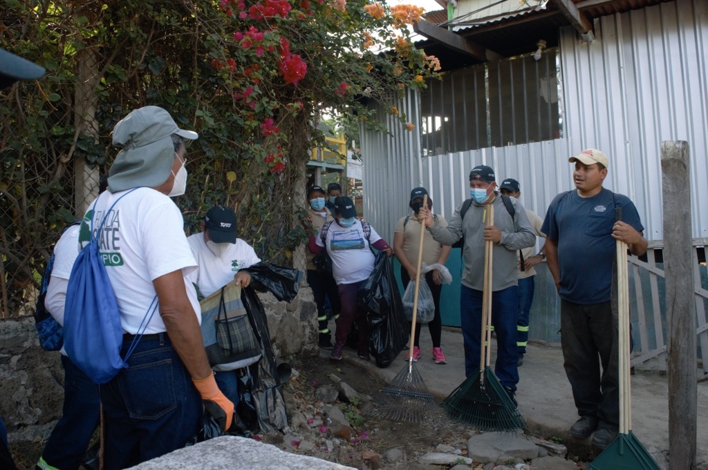 Representantes de las Adescos Unidas y Fundación Coatepeque organizan las rutas para la jornada de limpieza que realizaron el 27 de marzo, en la que en 4 horas de trabajo recolectaron 40 toneladas de basura. Foto: Carolina Amaya.