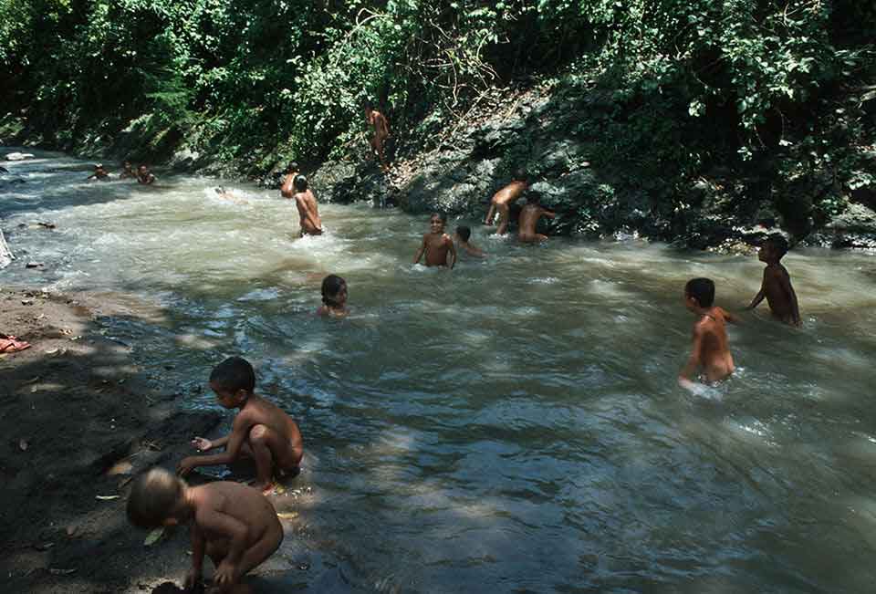 Hombres, mujeres, niños, ancianos y jóvenes formaban una sola masa. Impacientes, rogaban a quienes sabían nadar que les ayudaran a cruzar. No todos enfrentaron esa frontera de agua de la misma manera. Algunos improvisaron salvavidas con neumáticos, a los niños los envolvieron en sus camisas para cargarlos, hicieron flotadores con bolsas rellenas de ropa, tecomates, varas de bambú. Alguien colgó un lazo, sostenido de piedras de un lado y otro del Lempa. Cualquier cosa que flotara servía en ese río agitado.