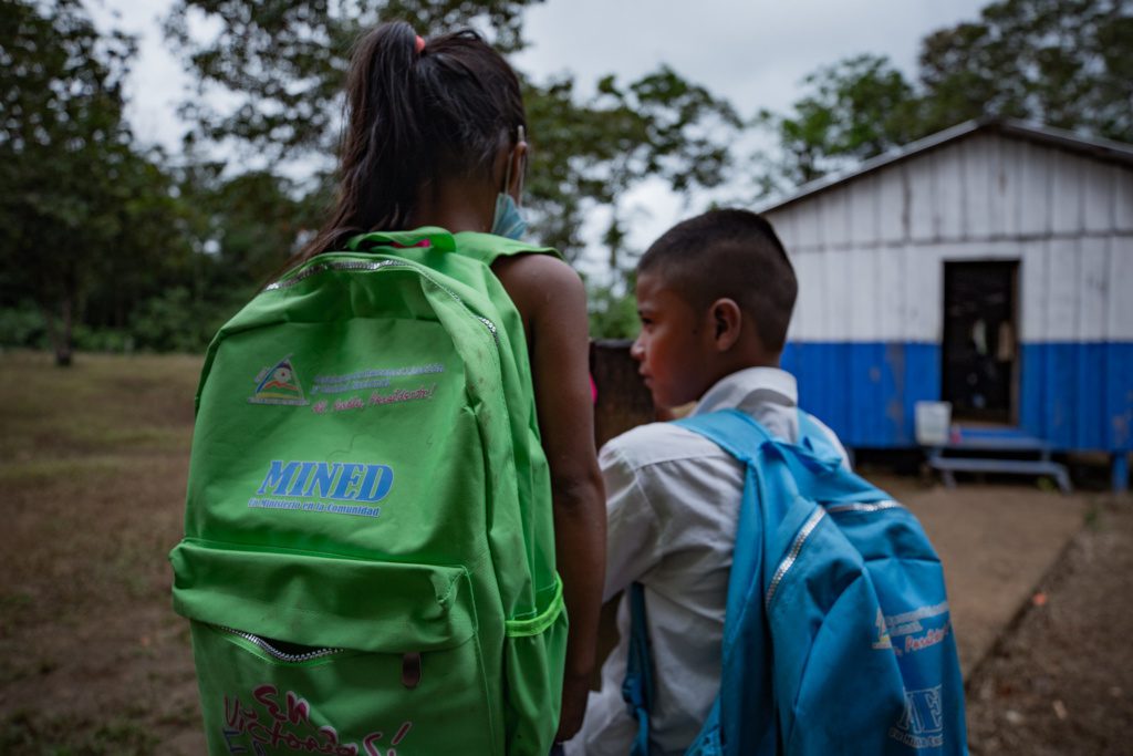 Dos niños asisten a un colegio en una remota localidad del Caribe Norte de Nicaragua. Foto de Divergentes.